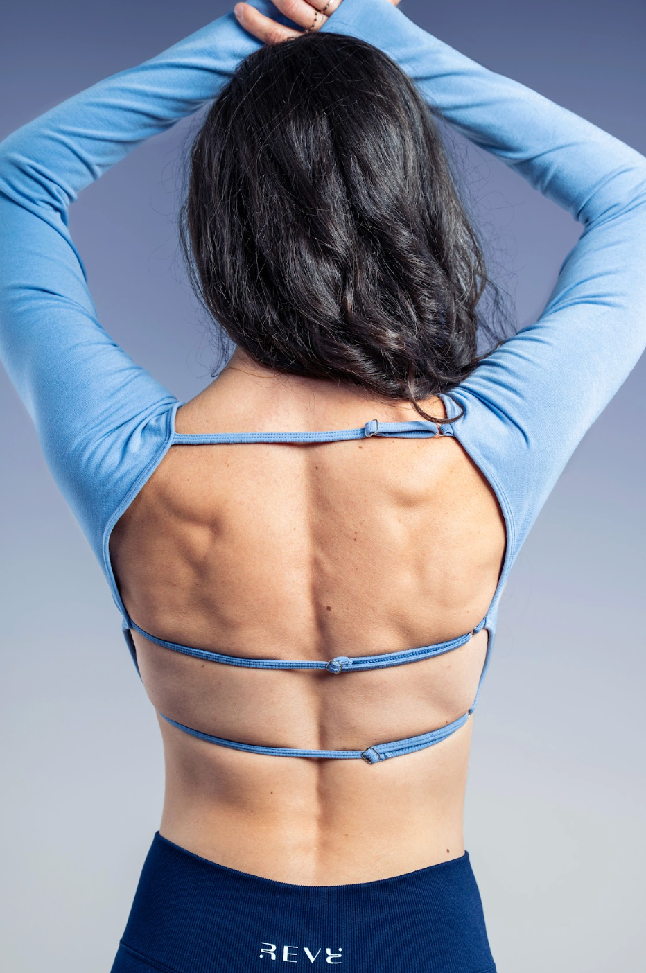À l’avant, un design minimaliste. À l’arrière, un dos subtilement ouvert qui accompagne chaque mouvement et laisse respirer le corps.